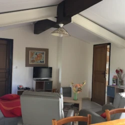 Living room (23m2) with sofa bed (convertible into bed 140), 9m2 chamber (couchage140), WC bathroom, terrace without opposite (living room of garden and sun baths, parasol) and large fenced yard, kitchen outdoor barbecue cooking plate 2 fires gas, refrigerator, sink, dining etc …. comfort: .. Campaign environment. Pets welcome. A 2.5 km from the village (multi-service grocery store, PTT, bar, restaurant etc …..)