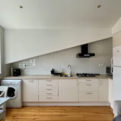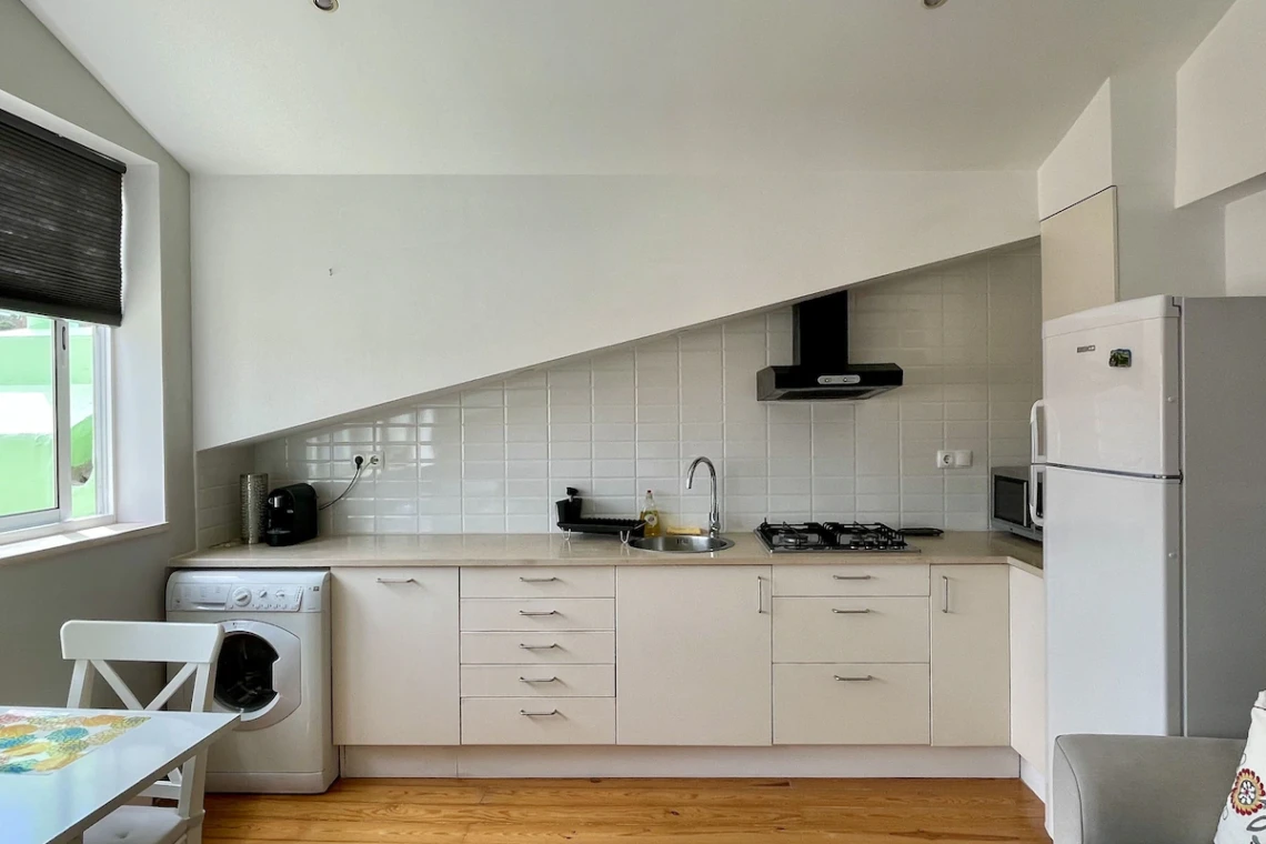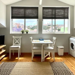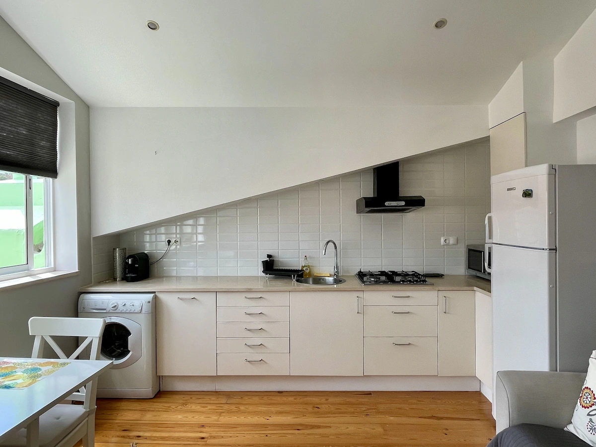 Cantinho da Amália (Amália’s Corner) is how we call our apartment, because its situated a few meters from the birthplace of the world famous fado singer Amália Rodrigues. Located on the 4th floor and attic of the building it has a beautiful natural light throughout the day and a magnificent view of the Castle of São Jorge. The entire building was completely renovated in 2009 and the apartment offers the modern comfort of central heating and air conditioning, but keeping the romantic atmosphere of the sloping ceilings. The comfort of the bathroom, the functionality of the kitchen and equipment (new), combined with its contemporary and tasteful decor makes this flat extremely comfortable. The apartment can accommodate a family of three.