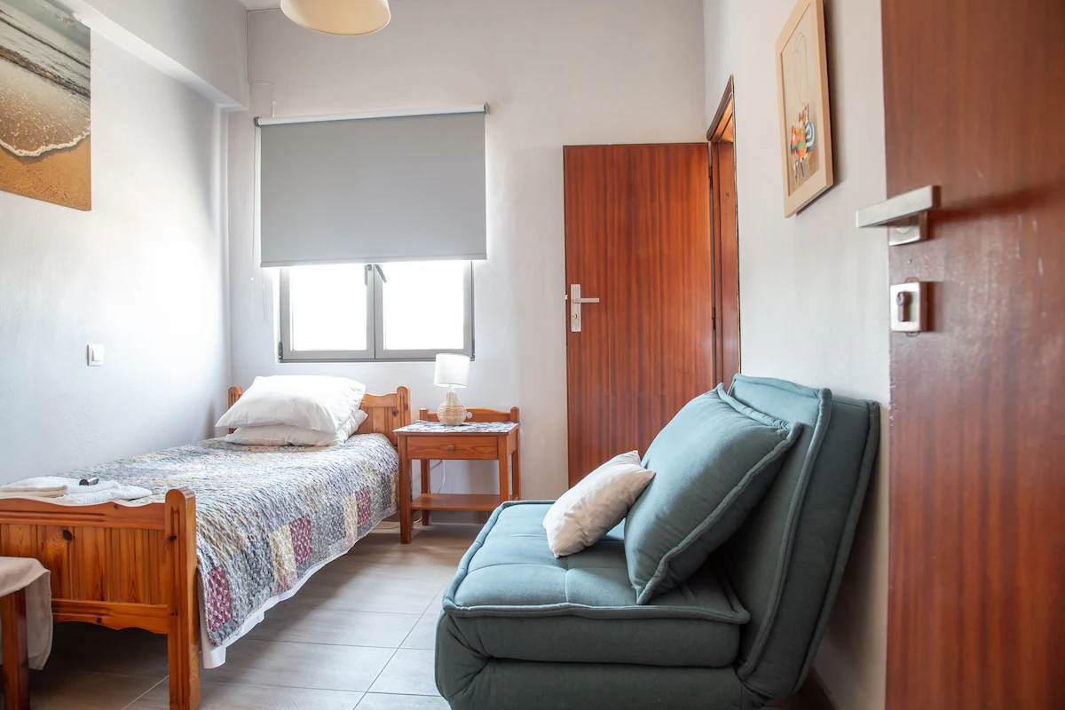 The prime location of the hotel, directly on the beachfront, promises to enhance your holiday experience. It is surrounded by a lively selection of restaurants, bars, and tavernas. Adding to the convenience, there are also several stores nearby for your daily needs. These local amenities enrich your stay with local flavors and experiences. For those who enjoy the nightlife, the area also boasts a selection of nightclubs, located at a comfortable distance to ensure that your peaceful sleep remains undisturbed. Conveniently, a bus stop is situated directly across the main entrance of the building, providing easy access to the city and a variety of breathtaking beaches – Elafonissi, Falasarna, Balos, Sougia, Kedodrasos – all within a 60 km radius from Agia Marina. This provides travellers with the unique opportunity to relish the beauty of a different beach each day. It also makes it effortless for guests to explore and immerse themselves in the rich history and local life of Chania. Experience the perfect balance of relaxation and adventure in Chania, with the tranquil beach, bustling city life, vibrant nightlife, and convenient shopping all within your reach. This location offers an unparalleled opportunity for exploration and enjoyment.