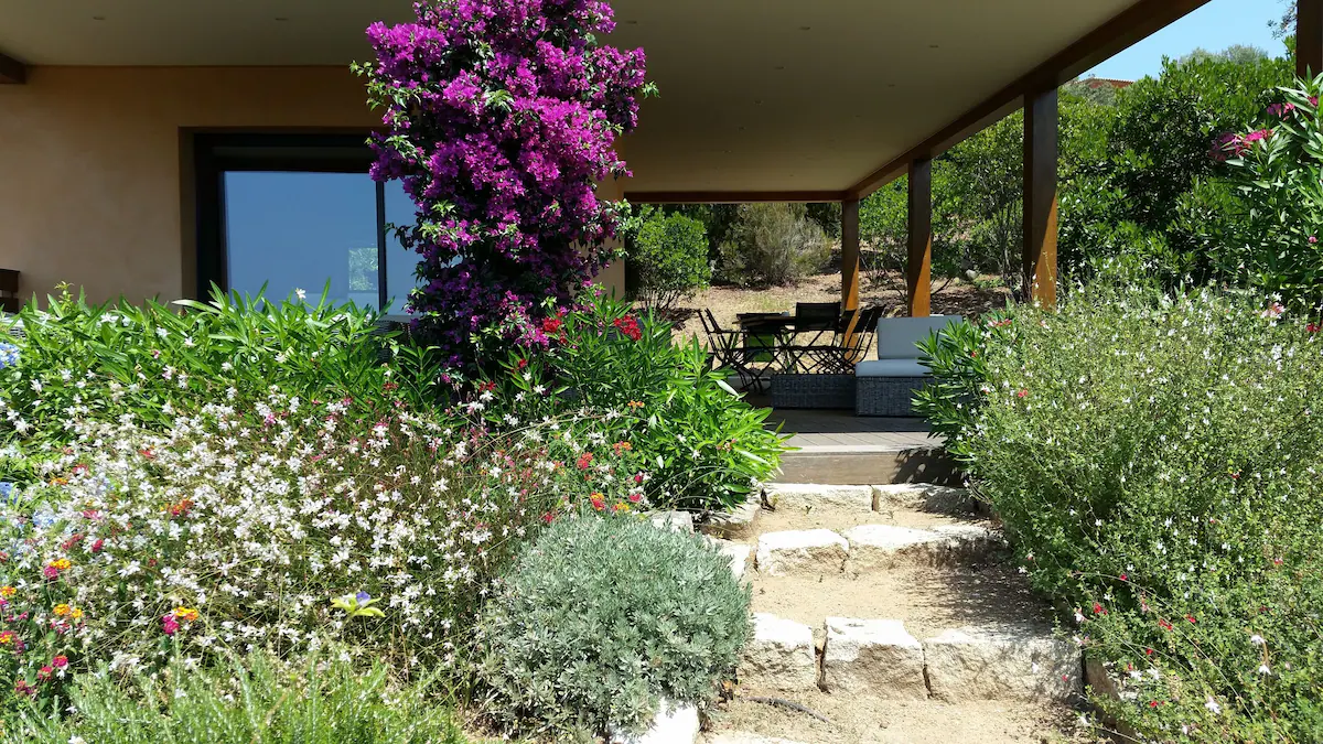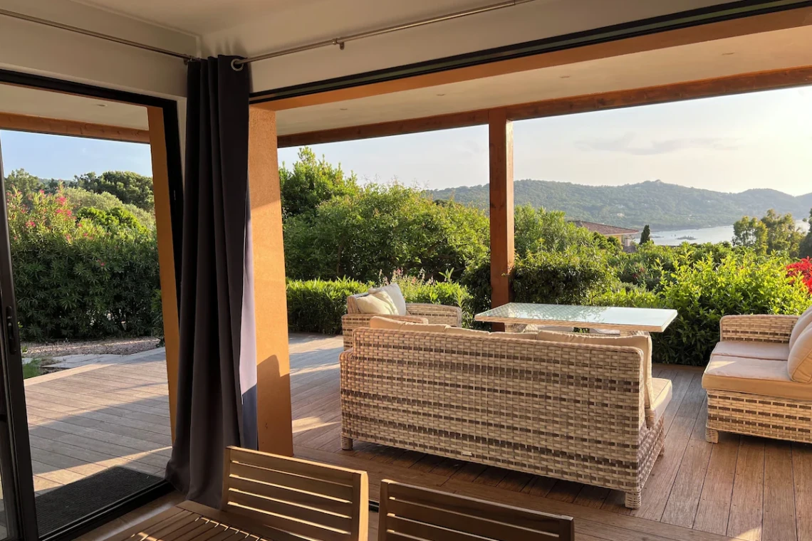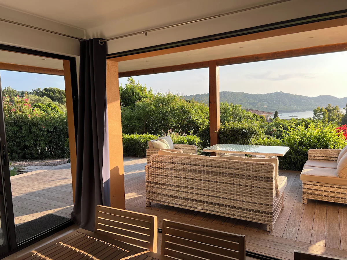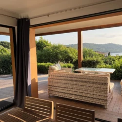 The deck is covered and made 50m².La overlooking the peninsula of ‘the castagna is superb, the sea is 200m ahead. There is a flower garden, with around the maquis.
