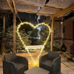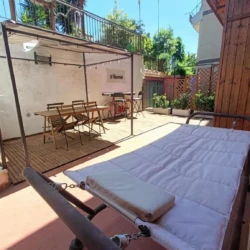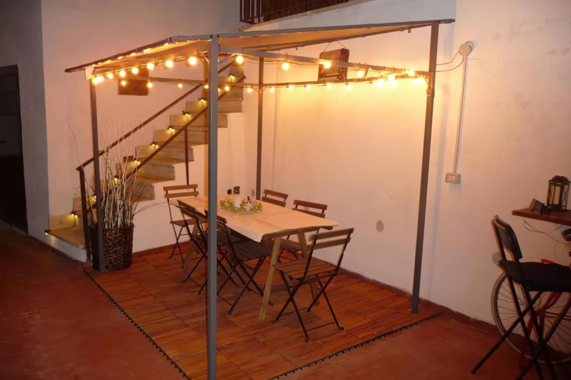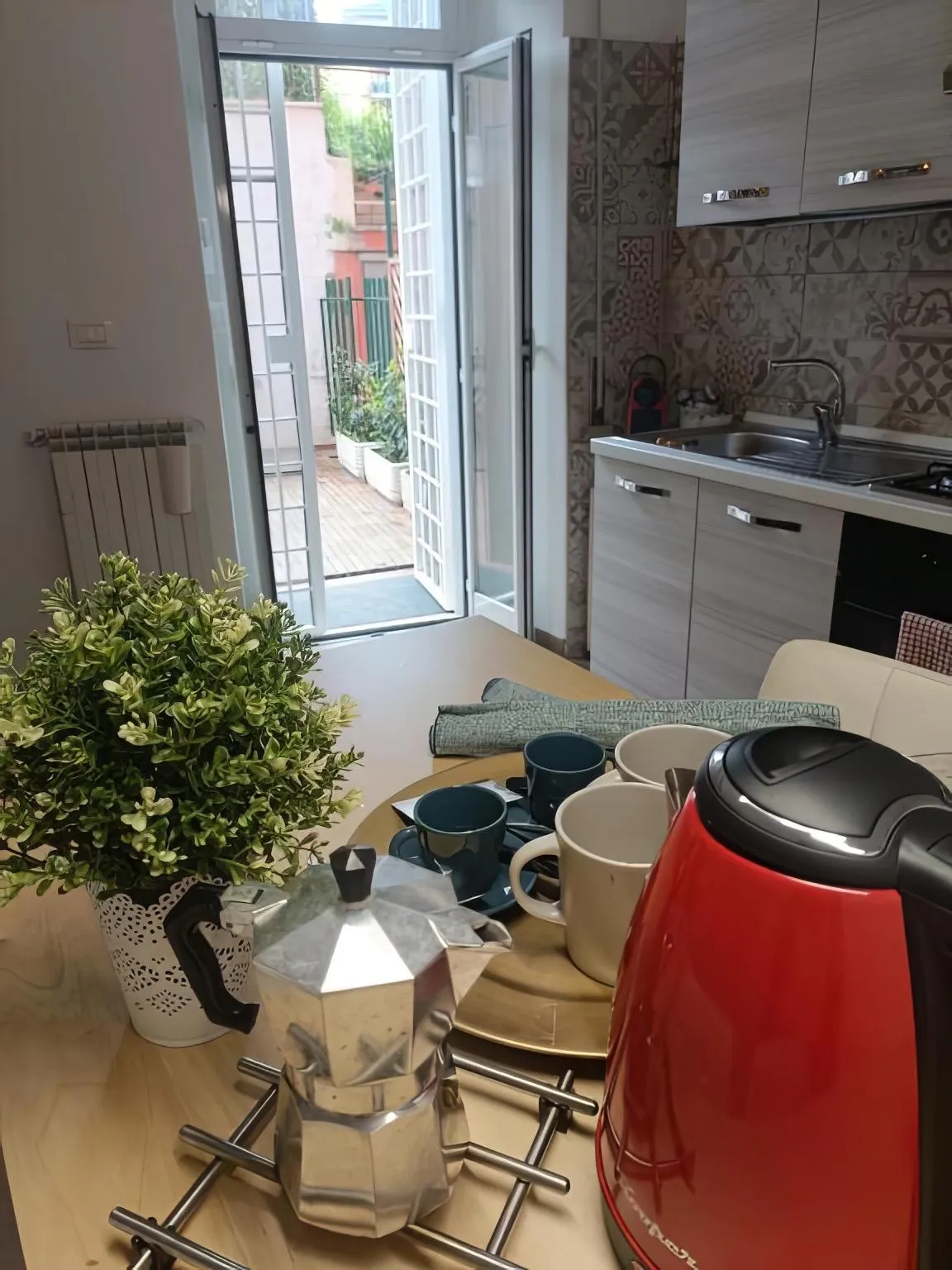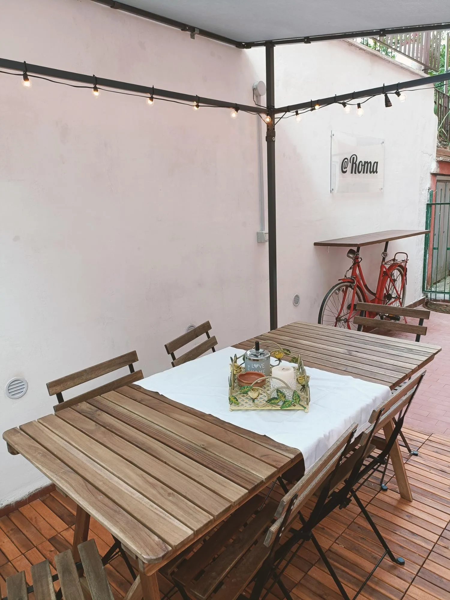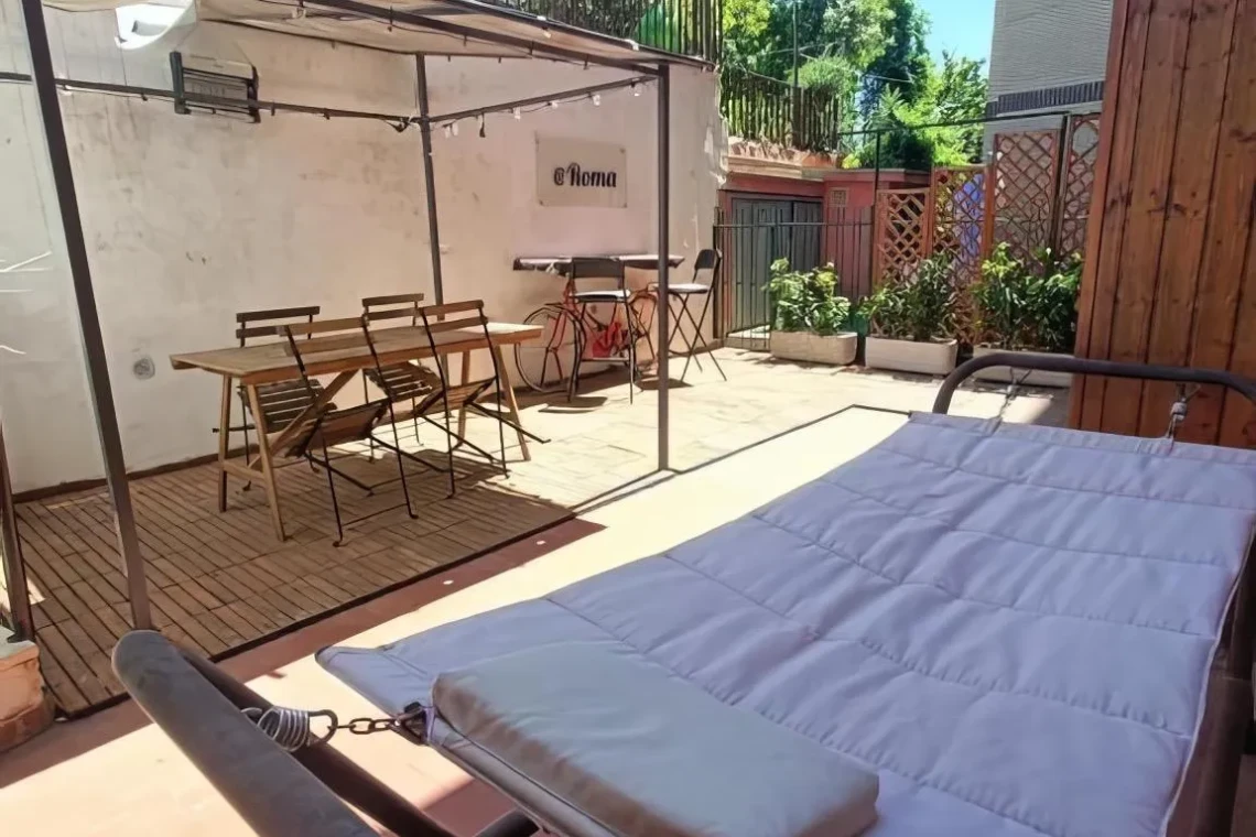 The recently renovated apartment features bright spaces decorated with contemporary style. The two double bedrooms provide comfort and privacy, while the welcoming living room is designed for relaxation. The kitchen is fully equipped, allowing guests to prepare their own meals, and the outdoor area with a gazebo offers a pleasant spot to unwind during the mild Roman evenings. Additional amenities include free Wi-Fi, air conditioning, heating, a flat-screen TV, and a safe; an extra bed is available upon request.