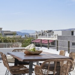 Freedom meets elegance: The impressive double-sided fireplace, the skylight and the private terrace overlooking Athens offer a profound living experience. The dining room and the fully equipped kitchen are ideal to make guests feel at home, while the bedrooms, serene and earthy, are designed to offer an impeccable sleeping experience. The spacious bathroom is calm and spacious, with luxurious features that inspire guests to relax and recharge.