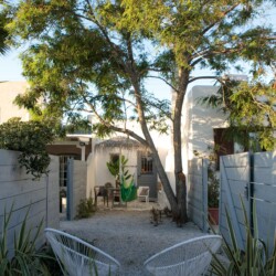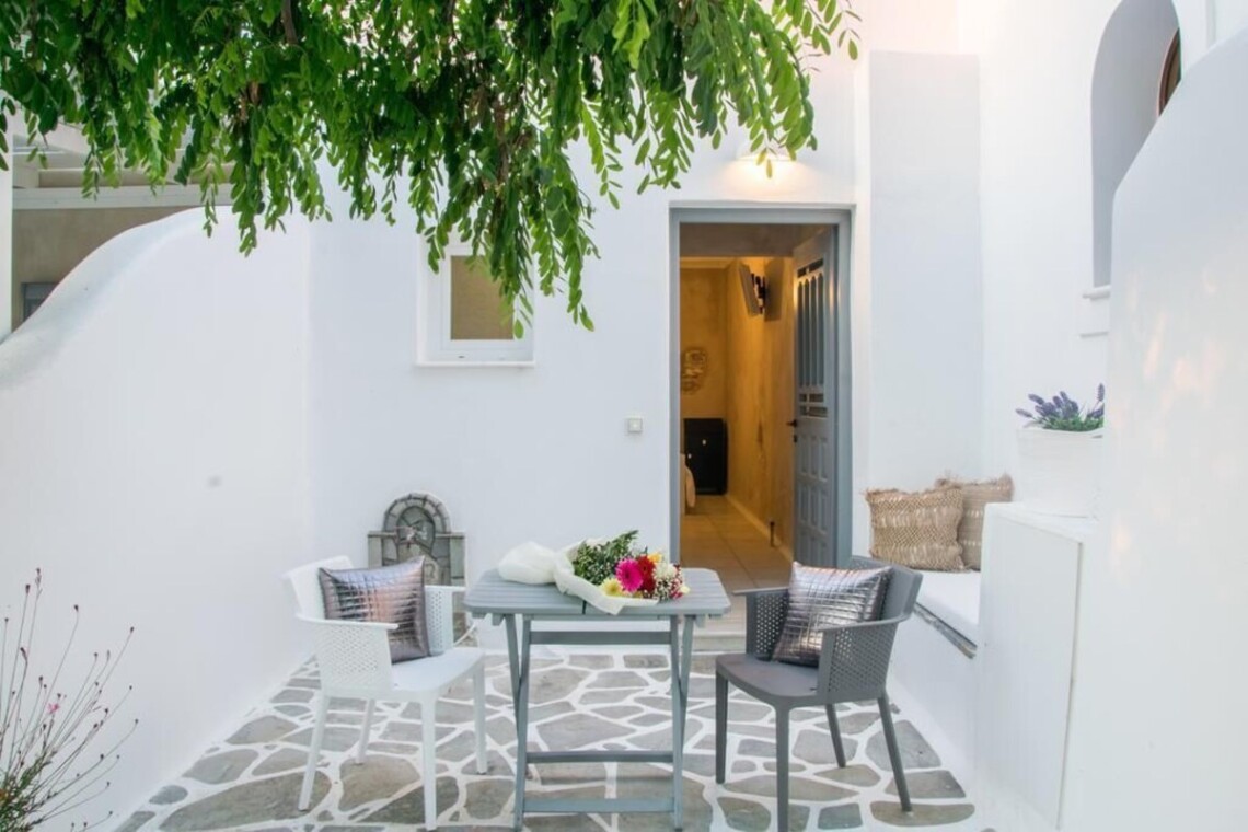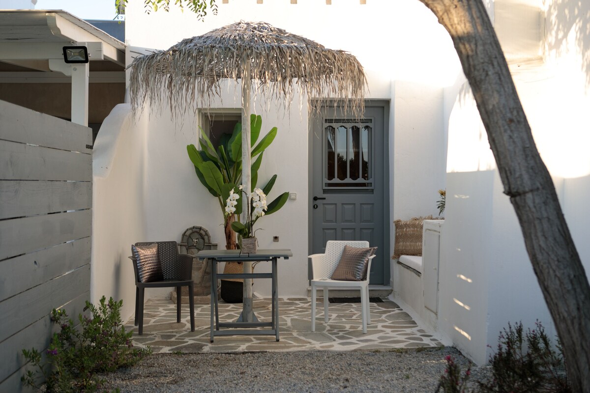 A double room with double-bed 1.45*2.00m. , bathroom with shower, a 40 m² patio – garden.