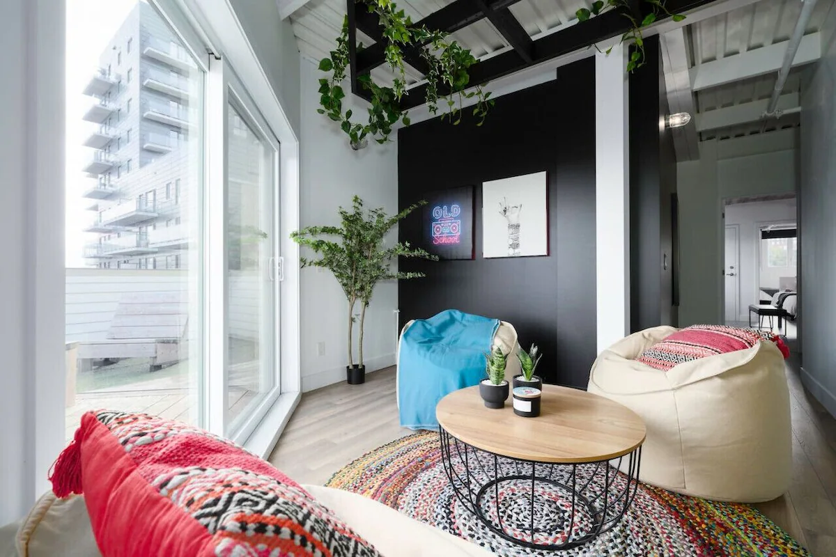 This New York–style, two-story condo comfortably accommodates up to 12 guests and is ideally located in the downtown area.