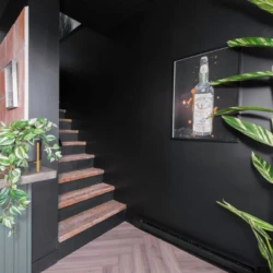 Upstairs, a cozy lounge area invites you to relax with a drink or a good book. The second floor also offers another full bathroom with a shower, one bedroom with a queen-size bed, and one bedroom with a king-size bed. An additional bedroom includes one queen bed and one double bed (accessible through another bedroom). You’ll also enjoy a second patio with breathtaking views of the northern mountains and Québec City’s Upper Town.