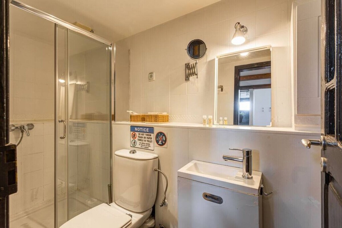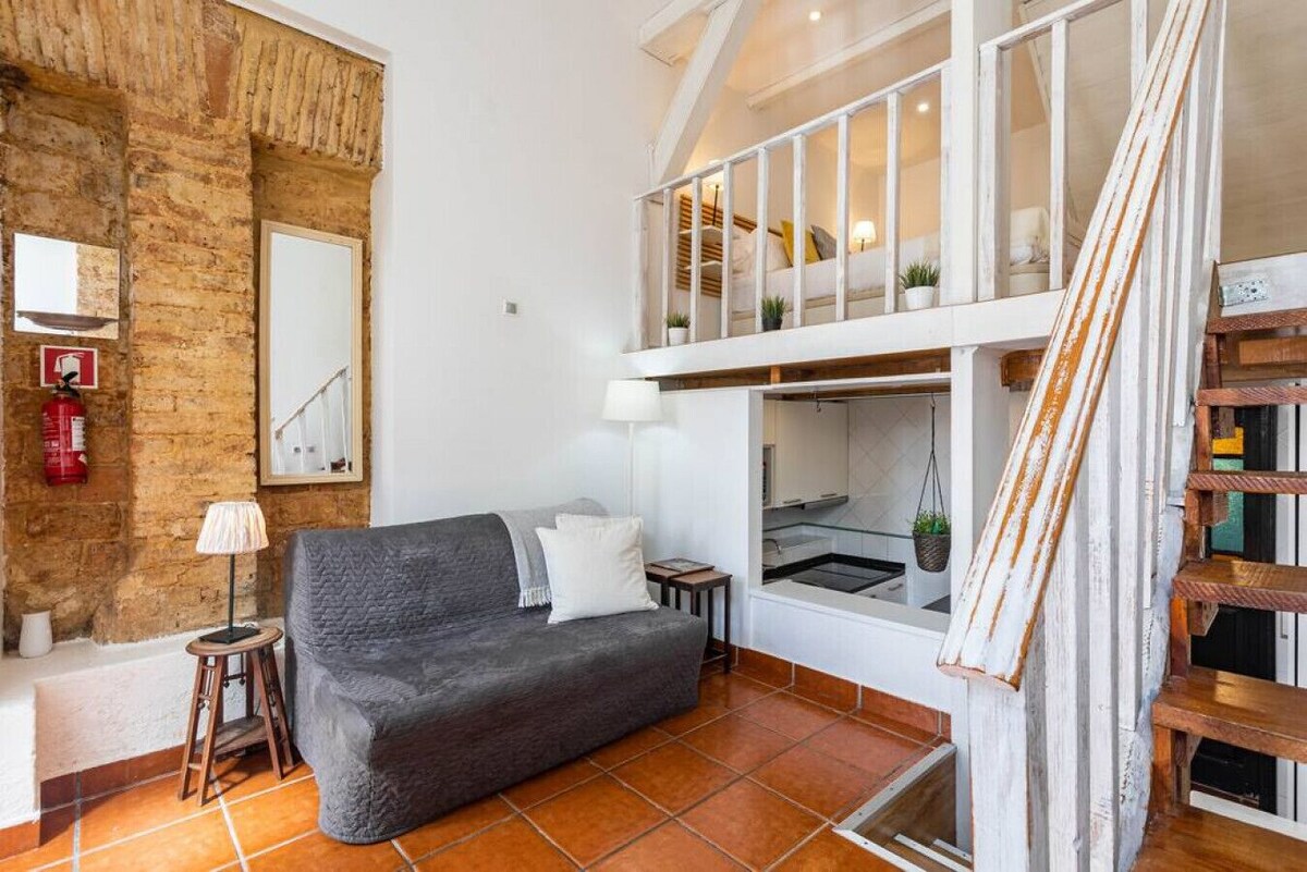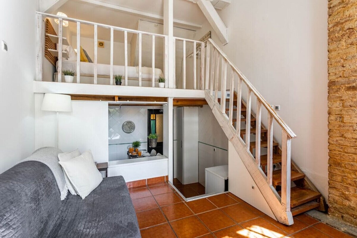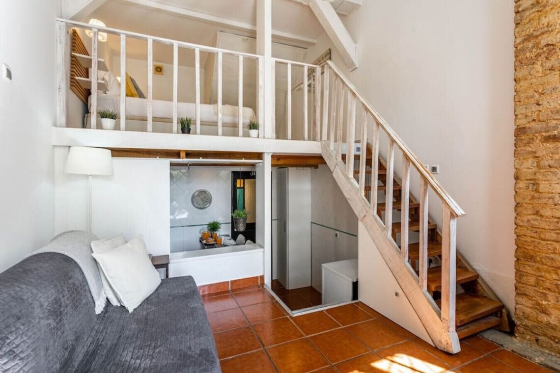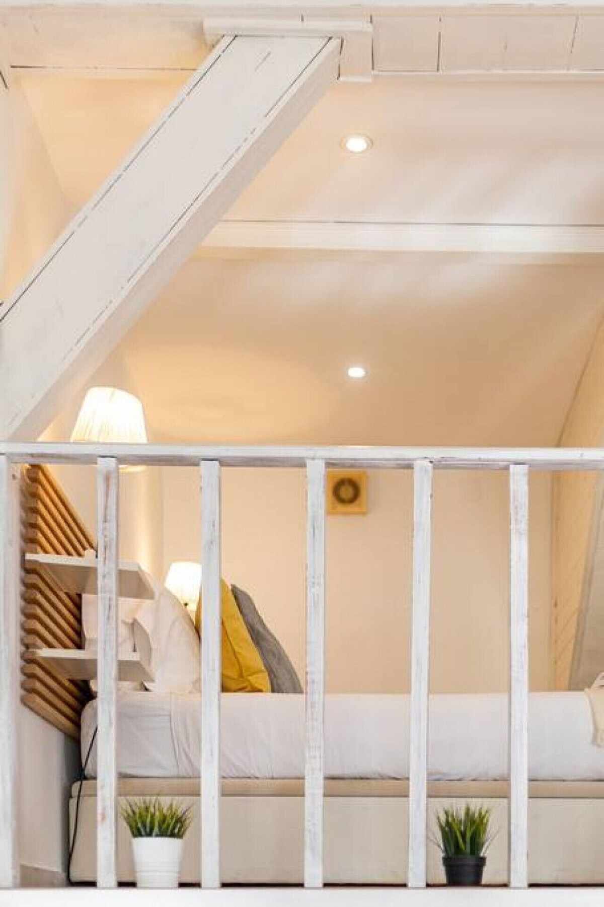 The apartment has an open mezzanine with a bed, cable TV, wireless high-speed internet and also heaters and fans!