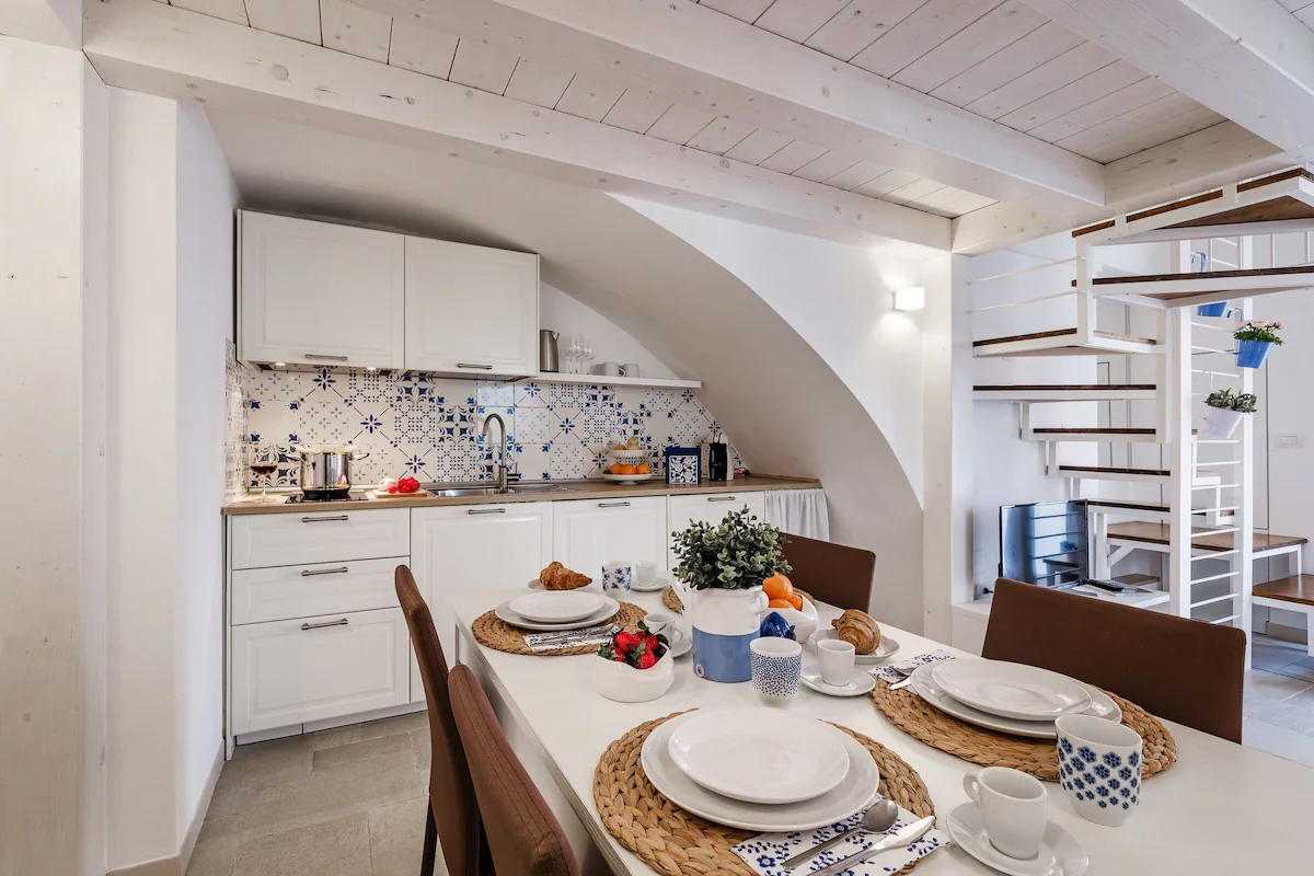 • A romantic double bedroom loft, accessible via an elegant spiral staircase.