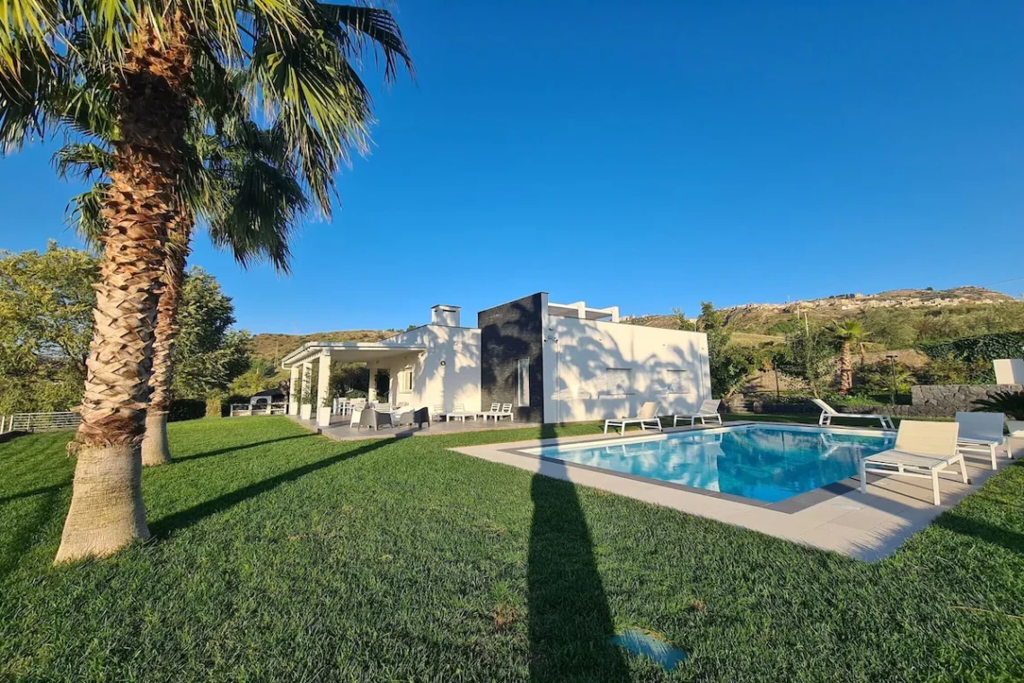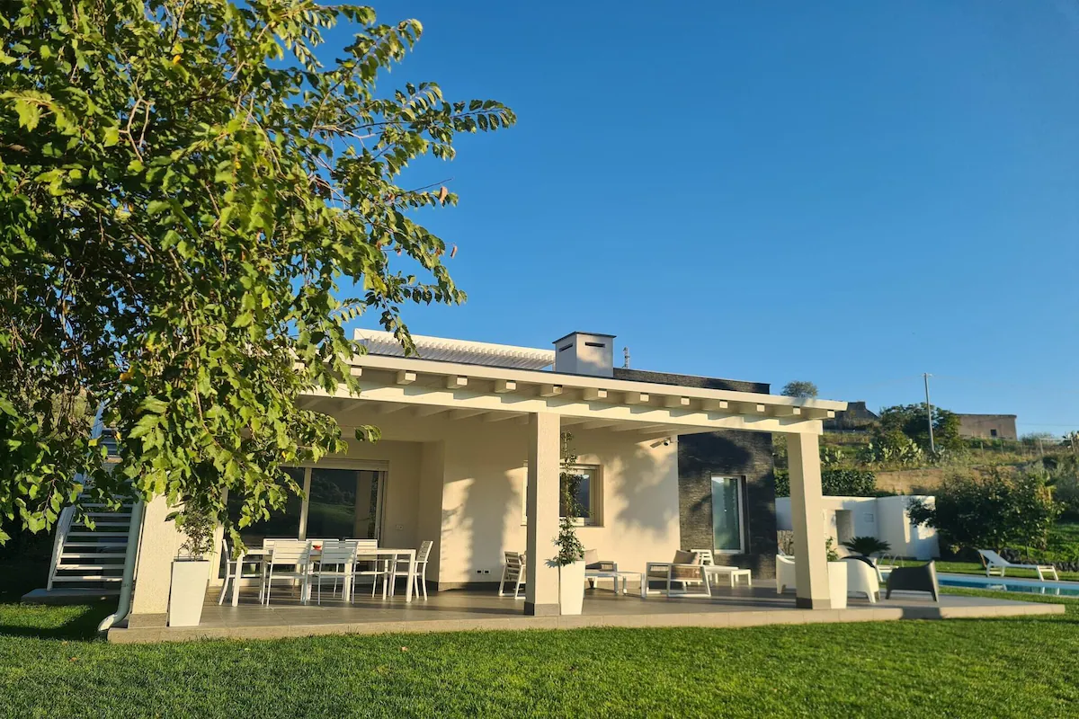 Tranquil Comfort in the Sicilian Countryside Surrounded by lush greenery and nestled in the heart of Sicily, this stylish holiday home in Leonforte offers the perfect escape for families and friends. With a private pool lined with sun loungers, a shaded veranda for al fresco dining, and a large fenced garden, relaxation is effortless here. The space is thoughtfully designed for comfort year-round with air conditioning, modern interiors, and play amenities like a high chair and party games to keep little ones entertained. Culture, Nature & Hidden Gems Just 1.5 km away, the historic center of Leonforte invites you to discover local life through its charming piazzas, shops, and the elegant 17th-century Granfonte fountain. The nearby Sicilia Outlet Village is a 25 km fashion haven, while day trips to Enna (25 km), the mosaics of Piazza Armerina (50 km), and Caltagirone’s famous ceramics (73 km) offer cultural richness in every direction. For outdoor lovers, explore local hiking trails, lake-side fishing, or cycling around the rolling hills. Authentic Flavors & Local Delights Indulge in Sicilian cuisine just minutes from the home—try Trattoria da Gino or Ristorante Al Fogher for hearty pasta and regional wines. Don’t miss the village bakeries and cafés for fresh cannoli and espresso. Whether you’re grilling under the stars with the plancha or sampling dishes nearby, this stay is a celebration of flavors and peaceful living in a true Sicilian setting.