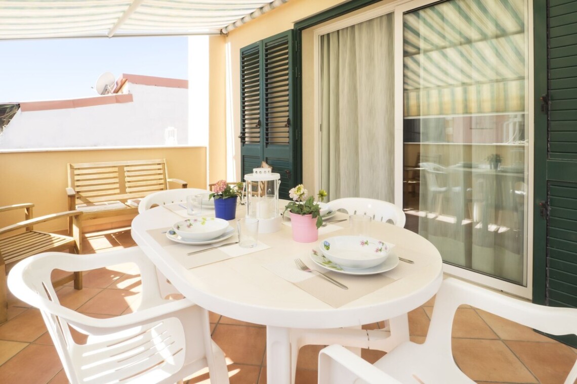 From the living room you can directly access tothe veranda, with awning, which offers a comfortable table with chairs ideal for lunch or dinner outdoors, and a comfortable sitting area.