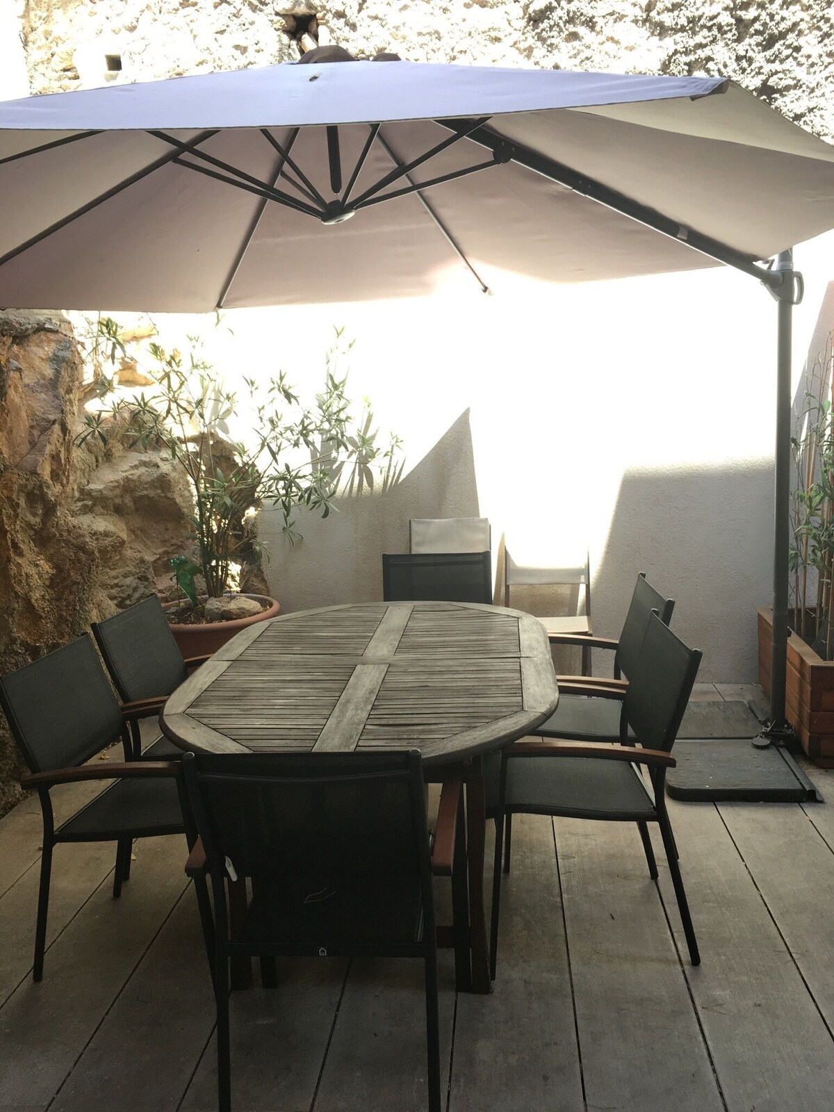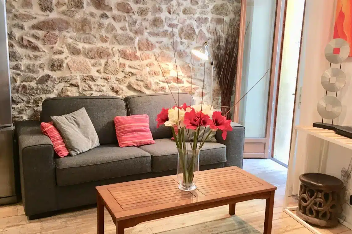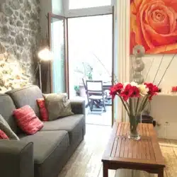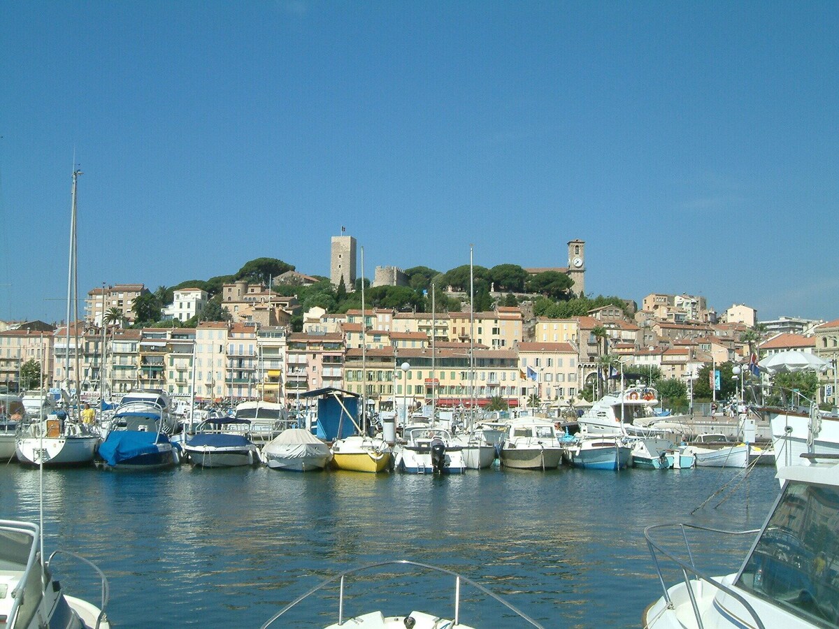 Beautiful 3 bedroom apartment with terrace any comfort in the city center, next to the church of Le Suquet in the heart of the Provence area. A 5mins walk to beaches, restaurants, shops, the Palais des Festival and the Croisette. Completely renovated with taste, wooden floors, exposed stone wall, kitchen open to living room with sofa and dining area. Door opening onto beautiful and large terrace with dining summer. 1 bathroom with walk-in shower, 2 bedrooms, toilet. Large flat screen TV, high speed internet WIFI, air conditioning.