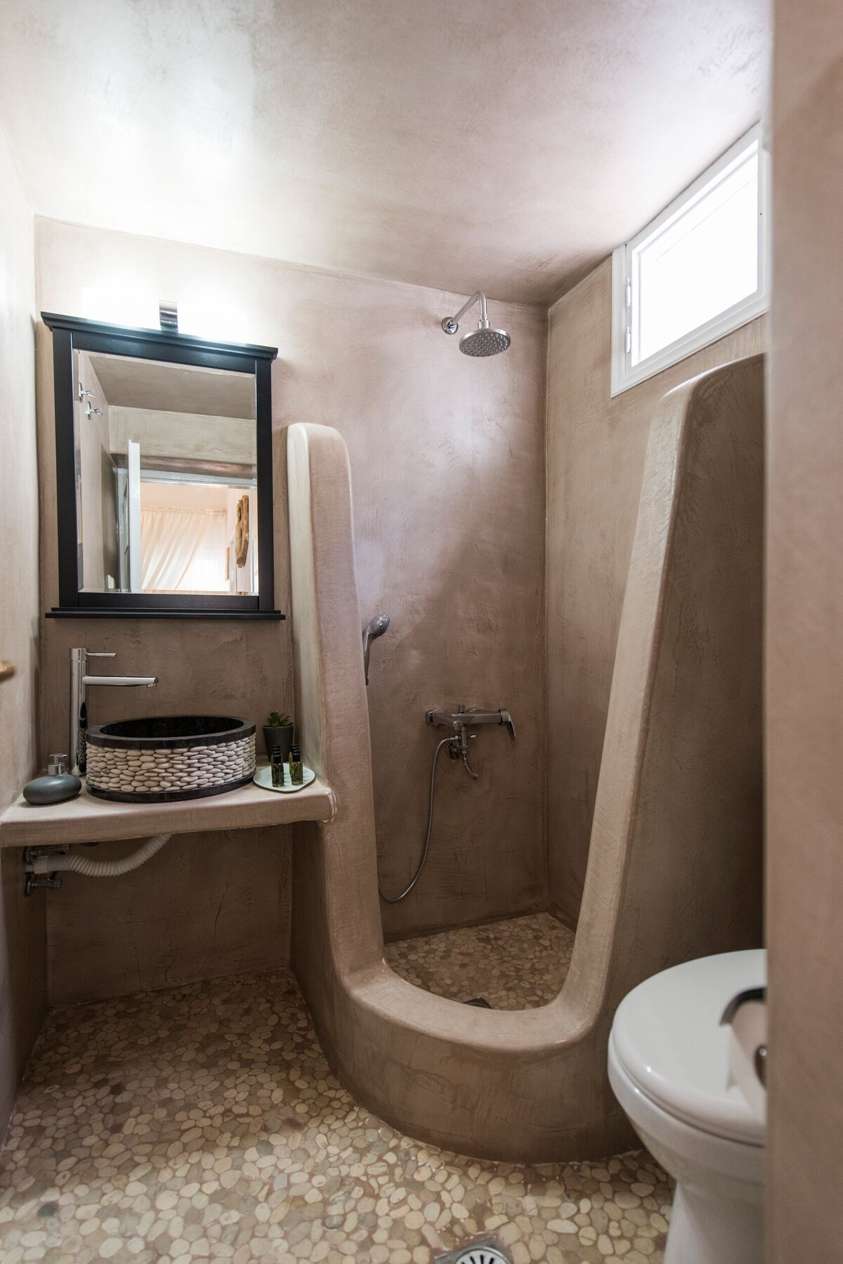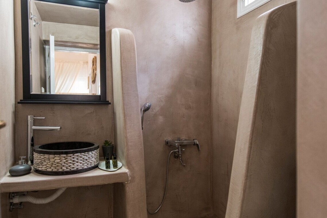 Iokasti is a fully renovated 62 sq. m., house. On a first glance it looks romantic, stylish and traditional, with high quality selected furniture and items. The house offers a comfortable living room with a smart LCD & a keyboard, books& guides, a working table, a fully equipped kitchen for cooking preparation or for enjoying a nice meal, a bathroom with shower and bath amenities. The house provides two connecting bedrooms with double beds & orthopedic mattresses, offering more comfort during relaxation and sleep. The second bedroom has an in-room toilet with easy-shower and a second door that leads to the front yard.