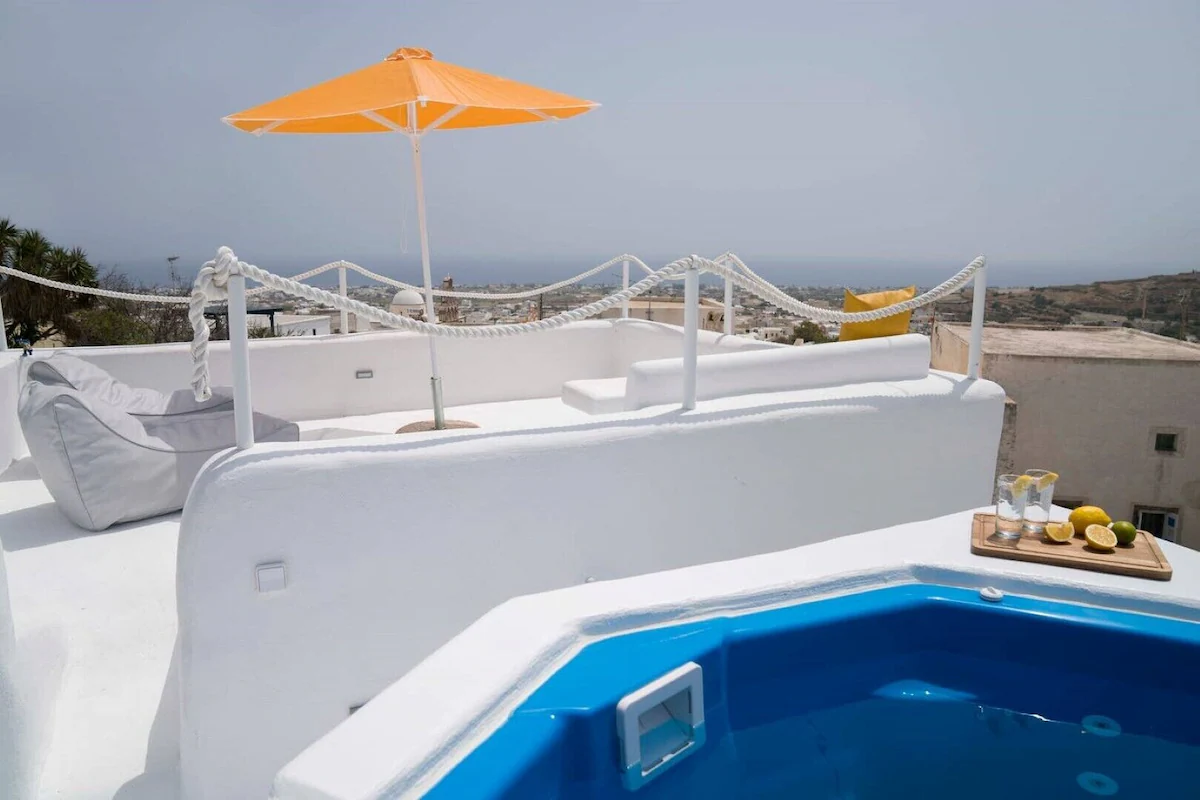 Beside the inside of the home, guests can access a private courtyard, and a private roof terrace where the Jacuzzi is placed.