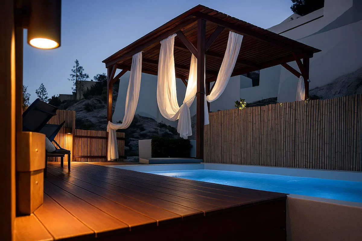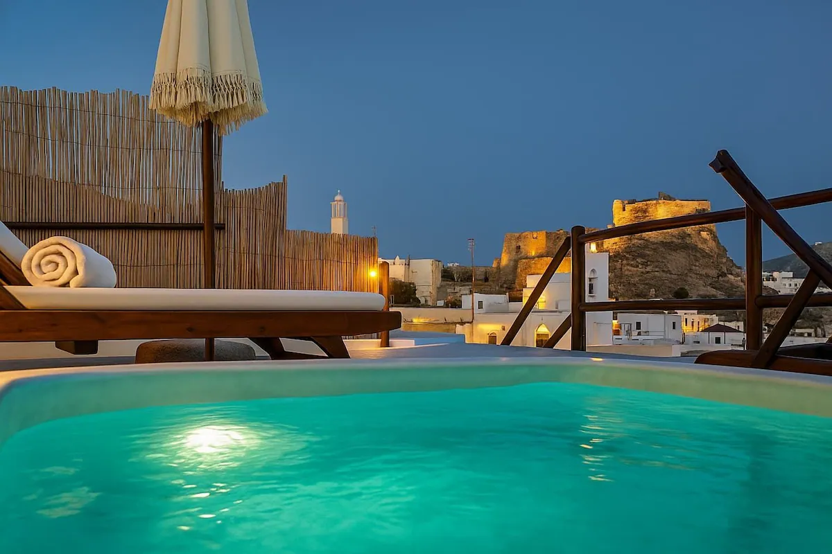 The rooftop is the ideal place to enjoy your favorite drink, near the hot tub, gazing upon the magnificent sunsets of the Aegean.