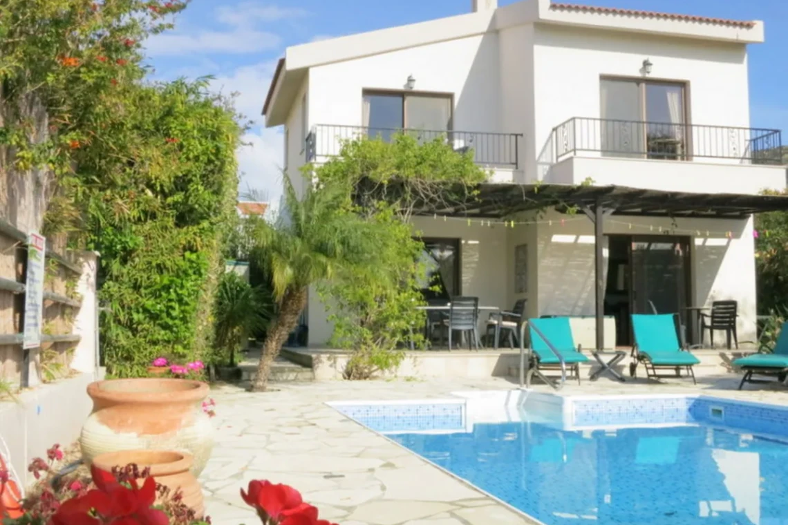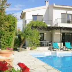 This bright and spacious villa features open-plan stylish living with free Internet, flat screen TV and Air Conditioning throughout. From the shaded patio and the sunny balconies guests can enjoy the views of the private landscaped garden, the sunny terrace surrounding the pool and the sea side beyond. Downstairs the villa offers open living and dining areas, a modern fully equipped kitchen and a toilet with wash basin. Upstairs, the two spacious bedrooms each feature both an en-suite bathroom and balcony. You can spend your day in the sun by the pool or relax in the shade on the large patio and enjoy the cool sea breeze.