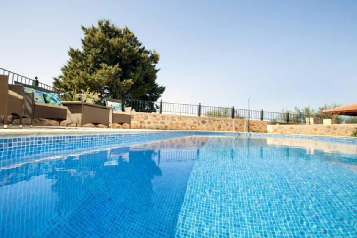 There are many outdoor places where you can relax and enjoy the sun or the sweet summer breeze at nights, staring at the stars in the sky. We have catered for providing various seating areas all around the villa as well as 4 pergolas for shade (2 upstairs and 2 downstairs by the pool). The pool is available all year round and is maintained twice a week. 5 sunbeds and 2 umbrellas equip the area around it. There is also a bbq for an additional option of cooking meals and spending quality time together.