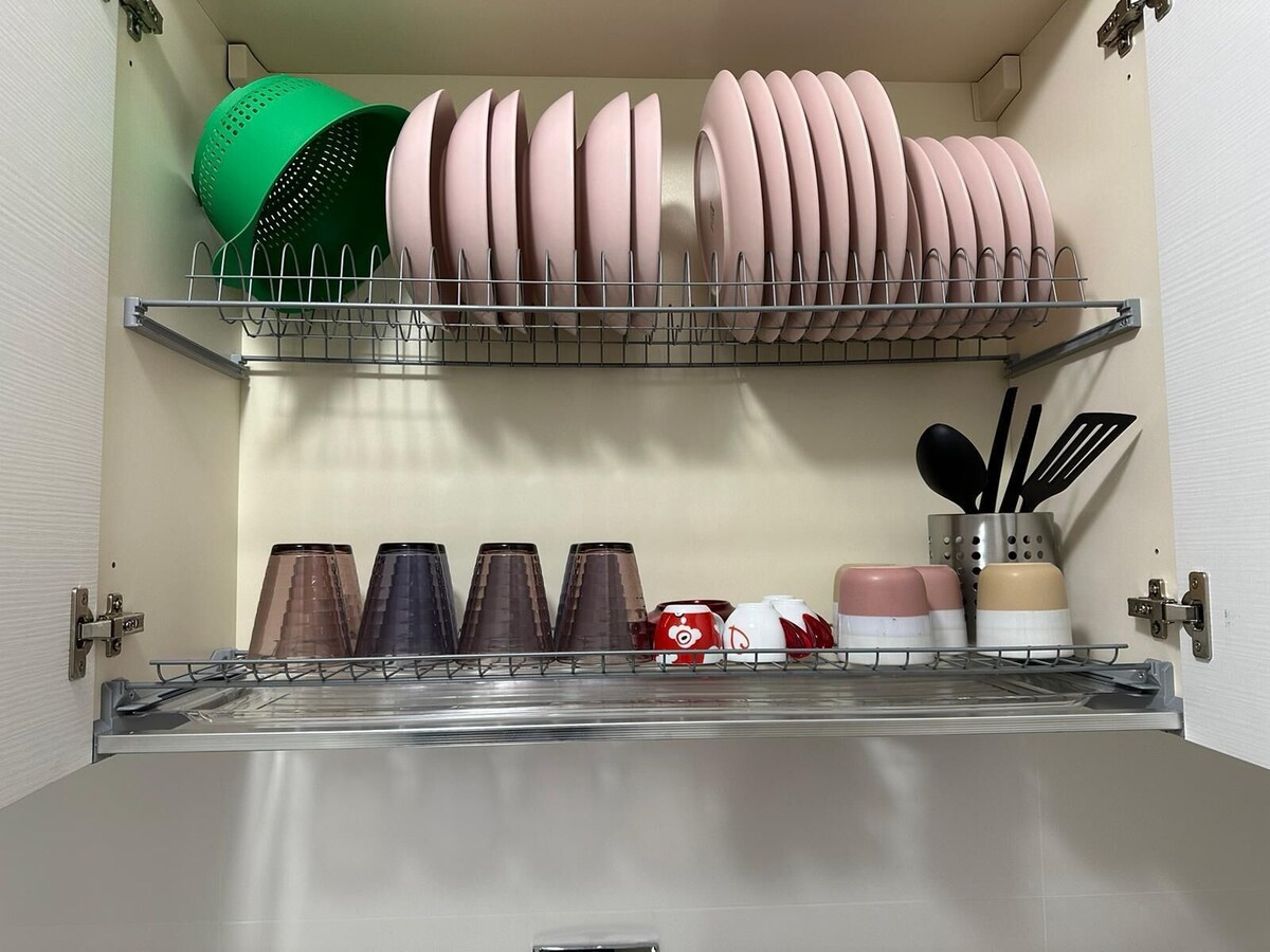 The apartment offers a hair dryer, a shower, and an iron/ironing board.